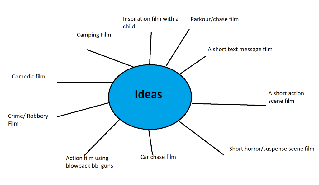 Above are 10 different ideas that I came up with for our upcoming film. In order to brainstorm these story basis, I excluded any ideas that were either too difficult, or out of our budget.